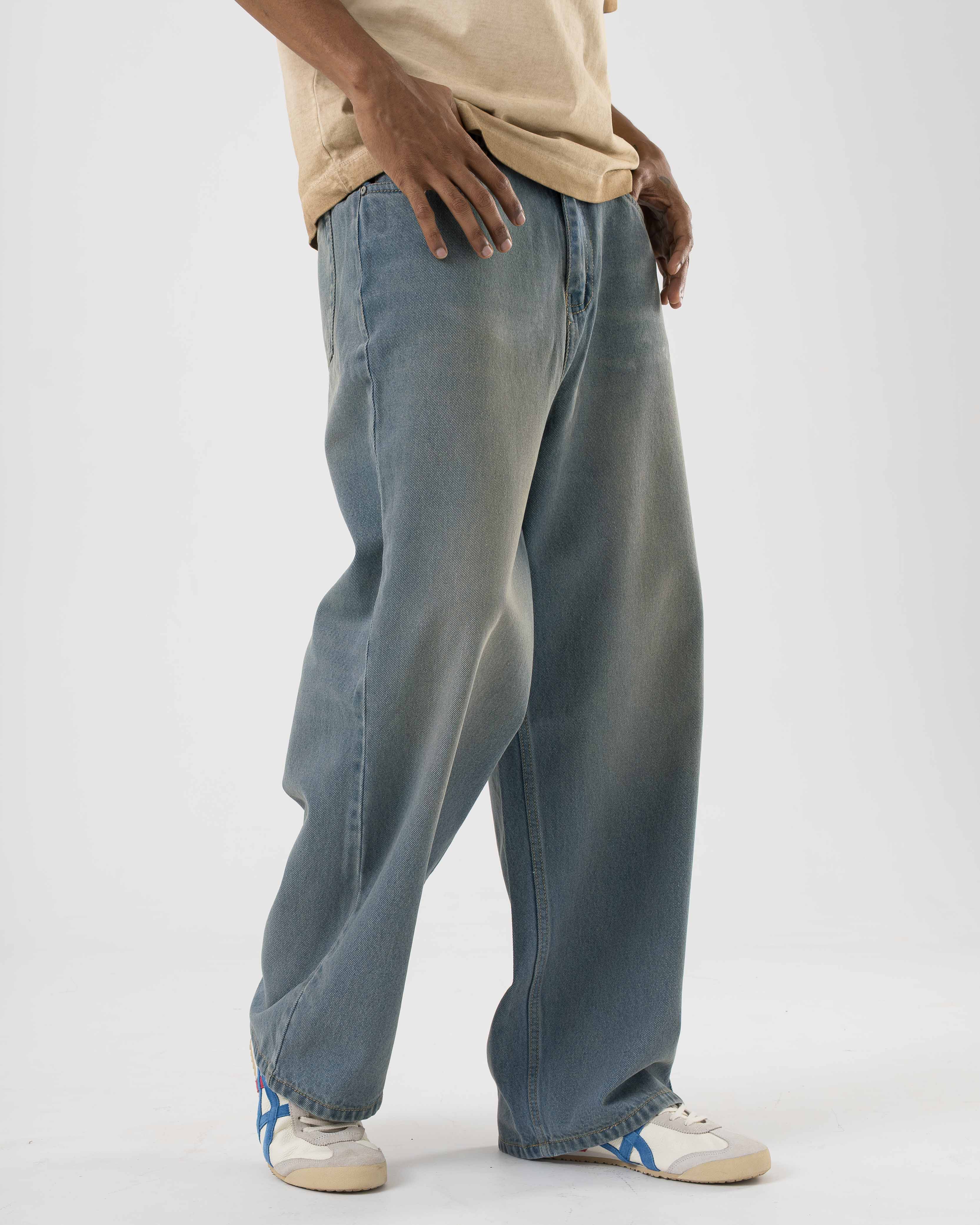 Loose fit from waist to hem with a wide leg opening. Designed to sit relaxed on the body and stack slightly over shoes for an effortless look.