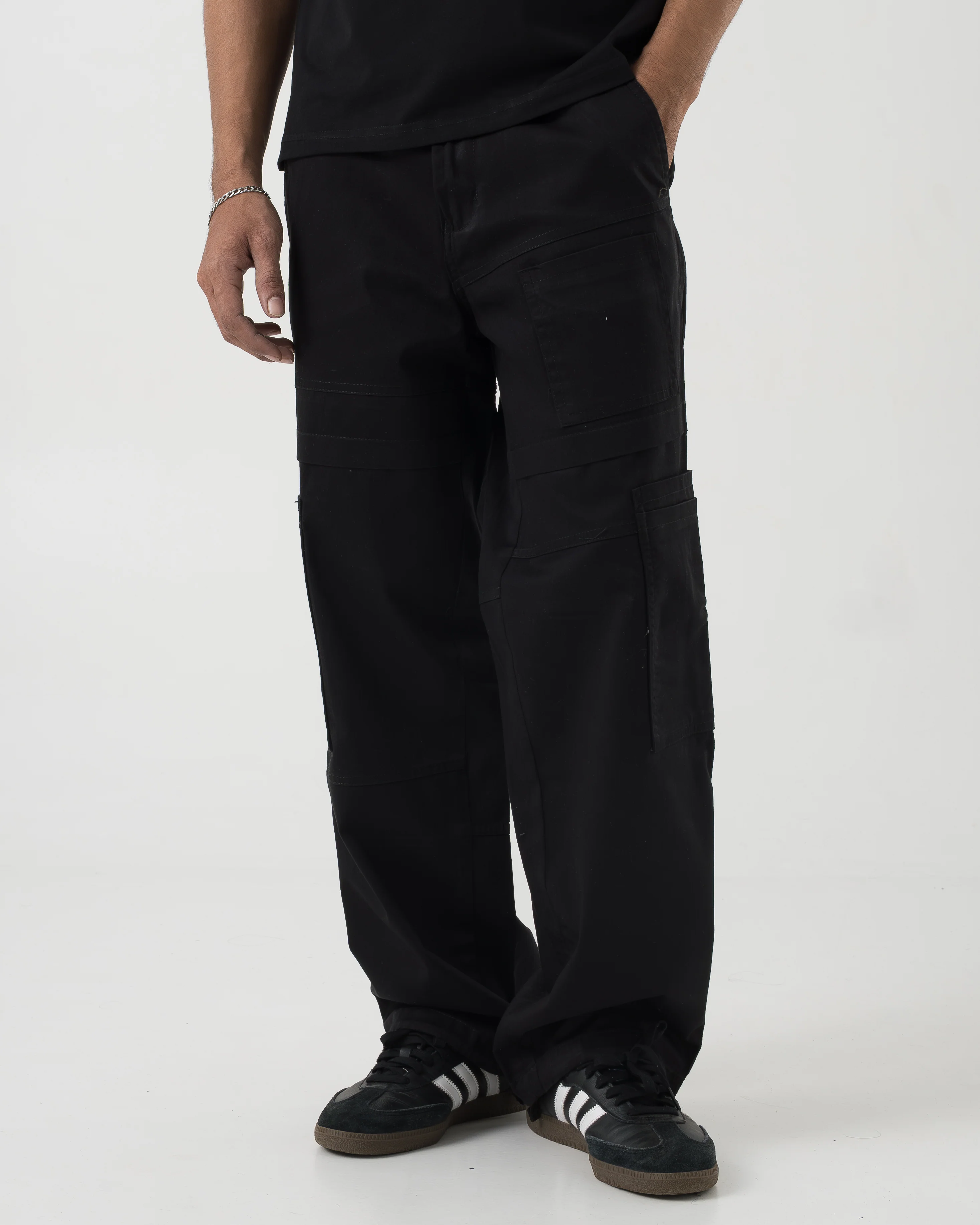 Multi-pocket utility construction with panel detailing throughout. Clean and minimal from afar, functional and workwear-inspired up close.