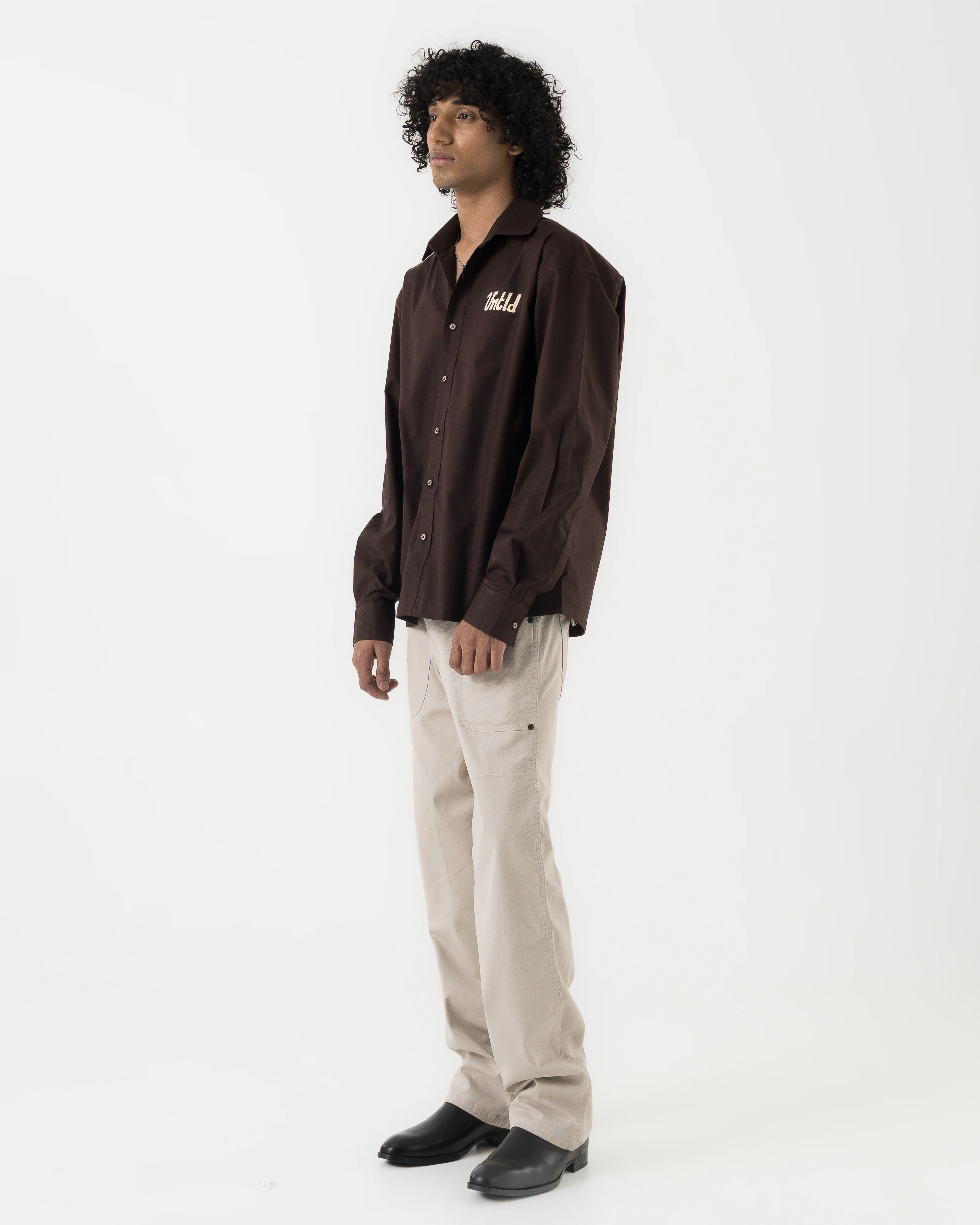 Relaxed modern shirt fit with a slightly curved hem. Designed to be worn open or buttoned, tucked or untucked.