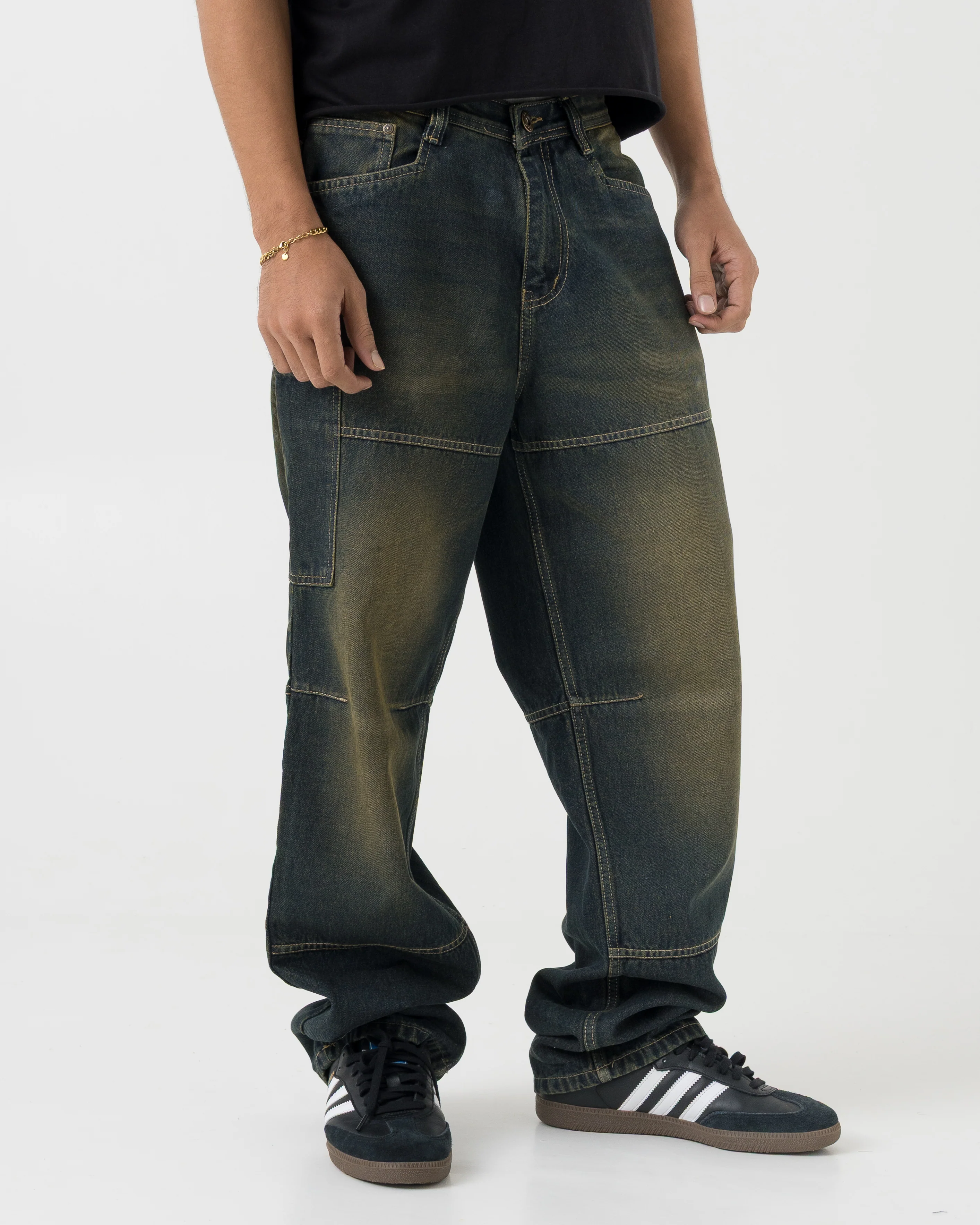 Made from heavyweight 100% cotton denim — durable, non-stretch, and built to age with character. Treated with a deep tint wash for a rich, worn-in look.