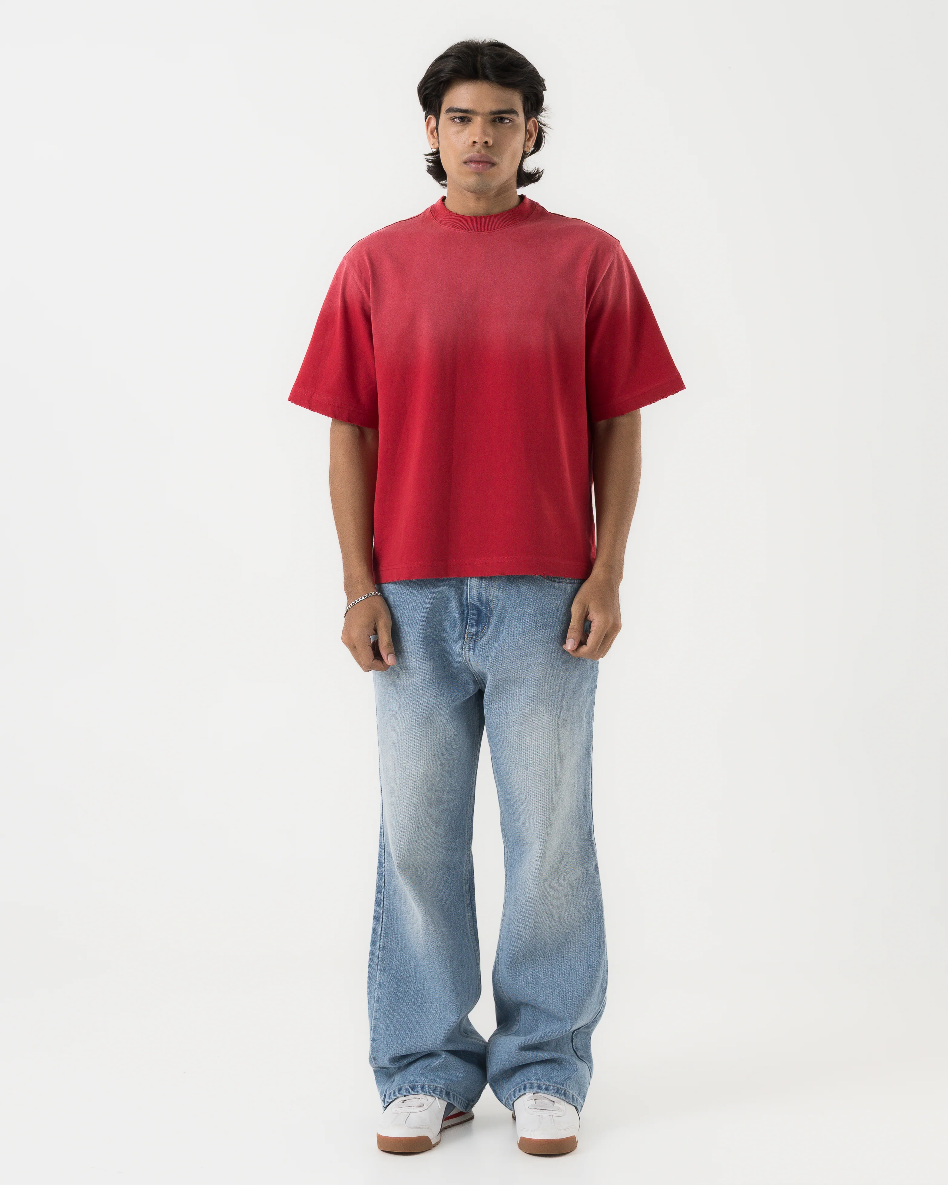Heavyweight light blue denim, finished with subtle tacking along the sides for an old-school, worn-in character. Faded but clean — perfect for everyday wear.