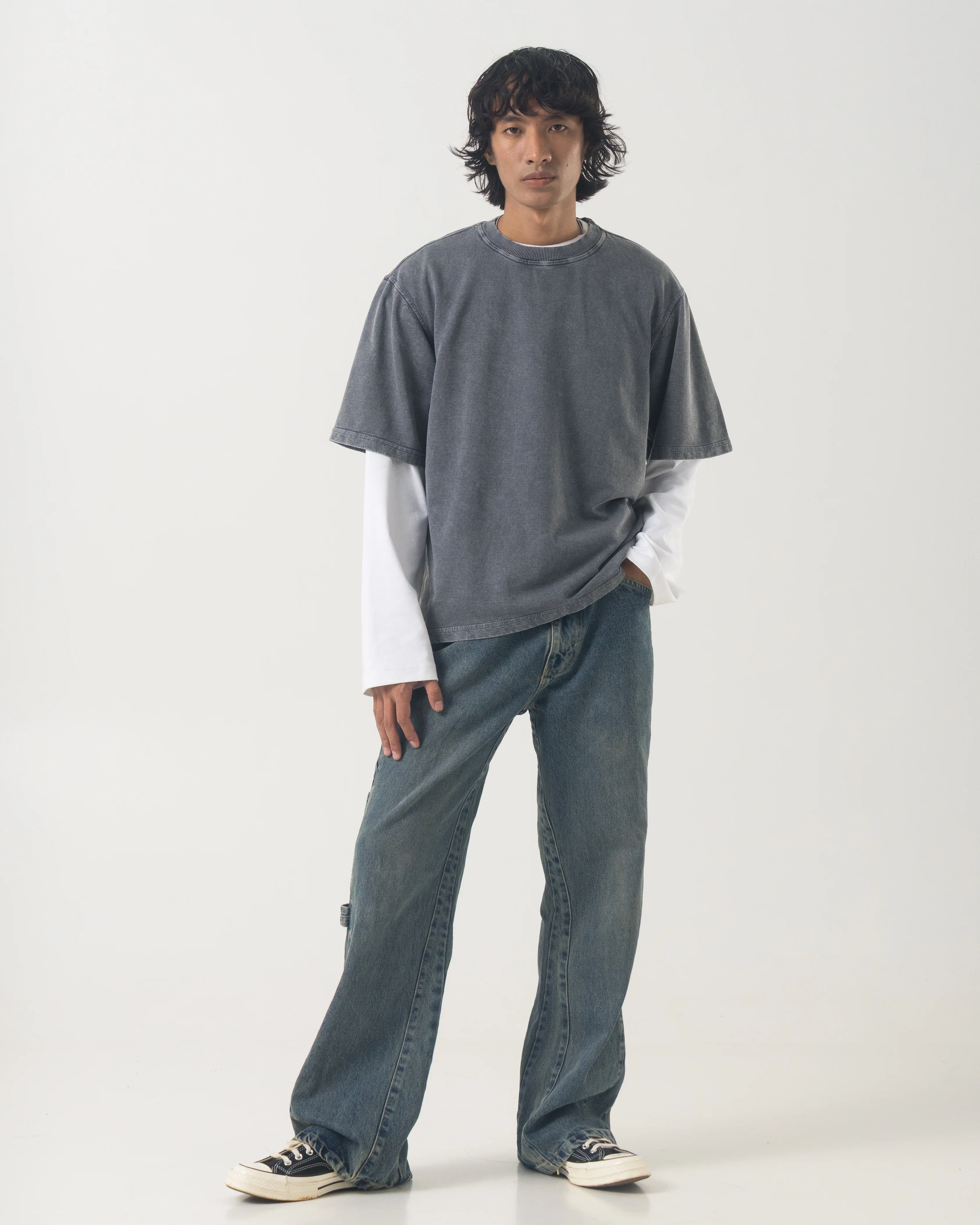 Relaxed silhouette — sits comfortably between oversized and regular. Designed to drape well without clinging or looking boxy.